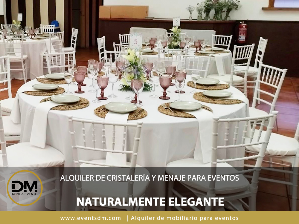 DM Rent & Events Alquiler mobiliario – Materiales para eventos Sillas – y Mesas – Mantelería – Menaje – Maquinaria de hostelería – Carpas – Sombrillas – Climatización – Estufas